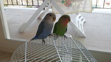 Quest'anno poco prima di Pasqua nella nostra casa sono giunti due nuovi amici, due inseparabili femmina azzurra e maschio verde, rispettivamente Angie e Tapu. Quando li abbiamo presi avevano 60gg. Il periodo precedente siamo andati a trovarli quasi tutti i giorni da chi li ha allevati per noi. Sono due simpaticoni.
